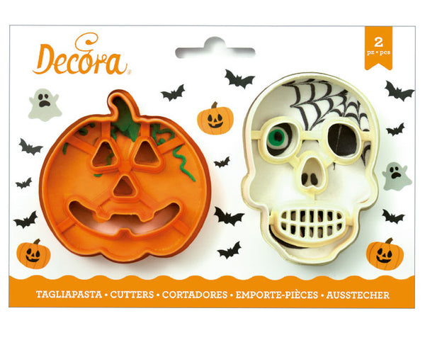 Sada obsahuje: 1 vykrajovátko tekvičky a 1 vykrajovátko lebky