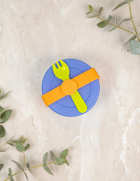 Vyrobené z odolnej nehrdzavejúcej ocele, aby prežilo drsné pády na ihrisku, s ľahko uchopiteľným silikónovým pásom pripevneným na veku, aby ho dali otvoriť aj malé ručičky.