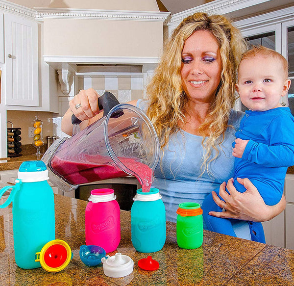Squeasy Snacker Mini je silikónová kapsička na opätovné použitie. Podľa nálady ju môžete naplniť ovocným alebo zeleninovým pyré, smoothie alebo jogurtom. Kapsička je ideálna na cesty, je praktickým doplnkom k jedlu a ekologickou alternatívou k jednorazovej kapsičke z drogérie. Rovnako ako pri slamke alebo fľaši na pitie, dieťa bez námahy a ľahko vysaje obsah kapsičky ústami a dodatočným tlakom ručičiek.