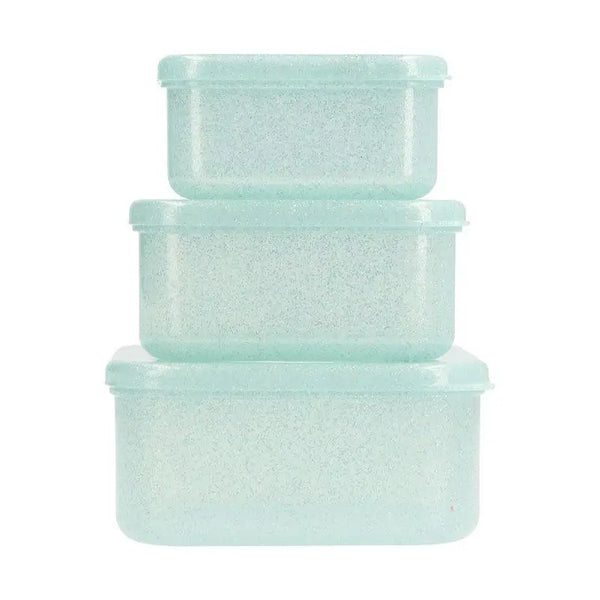 Sada 3 rozprávkových trblietavých obedárových boxíkov na nosenie rôznych druhov jedla do školy, škôlky, na ihrisko, na výlet alebo kamkoľvek idete. Priehľadný vzhľad umožňuje každej nádobe odhaliť svoj farebný obsah - ako malý magický kufrík plný prekvapení. Desiatové boxy sú stohovateľné, zachovávajú priestor a poriadok bez toho, aby stratili svoje čaro. Boxíky nemajú žiadne tesnenie.