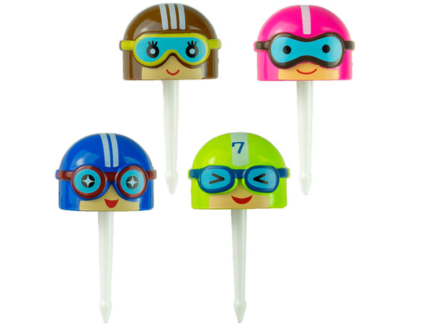 Sada "Kamoši v helmách" obsahuje 4 opakovane použiteľné napichovátka.