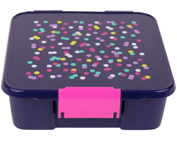 Zbaľte zdravé a rozmanité občerstvenie do svojho nového lunchboxu  Bento 3, ktorý uprednostnia deti či dospelí, ktorí preferujú sendviče, wrapy či yeleninové šaláty. Tri oddelenia uľahčujú výber zdravých porcií. Možností je neúrekom. Pridajte orechy, krekry, ovocie, zeleninu, jogurt alebo dokonca dip. Vďaka silikónovému tesneniu sa z boxu nevyleje jogurt, omáčka či ovocné pyré. Priehradky sú oddelené aj medzi sebou tak, aby sa maškrty v nich nemiešali.