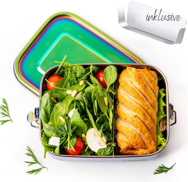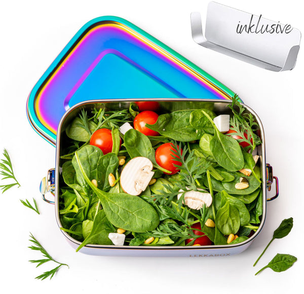 Nerezové desiatové boxy sú nielen odolné a robustné, ale možno ich ľahko umyť aj v umývačke riadu. V kombinácii s vodeodolnými nálepkami na lunchbox od Jabalou sa každý lunchbox stáva jedinečným kúskom. Či už je to v škôlke alebo v škole, v práci alebo v domácej kancelárii, na túre alebo na pikniku, tento nerezový lunchbox udržuje vaše jedlá v bezpečí a zdravé. LEKKABOX ponúka dostatok priestoru na chlieb a rožky a zároveň je dostatočne kompaktný aj pre školské tašky a batohy.
