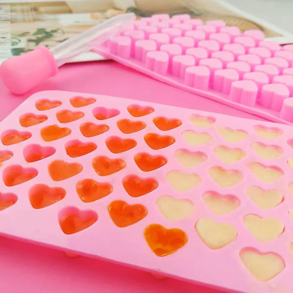 Silikónová forma na výrobu domácich gumových srdiečok s dávkovacou pipetkou. Je to zábava pre malých aj veľkých, veď kto by nechcel mať v krabičke zásobu vlastoručne vyrobených mini srdiečok rôznych farieb a chutí? Navyše zdravých, z ovocného pyré alebo šťavy? Srdiečka môžete vyrobiť zo želatíny alebo agaru, ako komu vyhovuje. Prípadne môžete formu použiť na mrazenie džúsu, šťavy, smoothie a ozvláštniť nimi potom pohár úplne obyčajnej nudnej vody či raňajkovej kaše. Súčasťou balenia je aj malá pipeta, ktorá zaujme každého výmyselníka a uľahčí výrobu srdiečok.